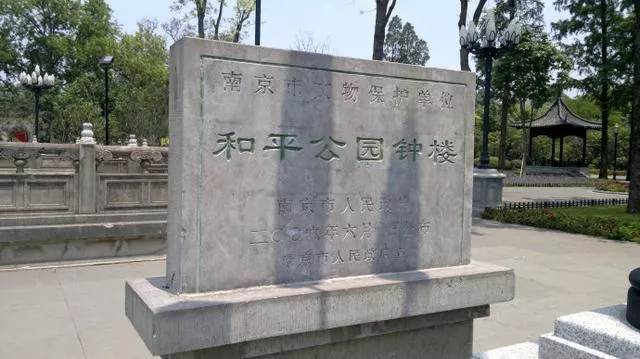 從南京雞鳴寺地鐵站出來(lái),就是和平公園。公園位于北京東路東段,南京市政府前,有一標(biāo)志性建筑——鐘樓,正式名稱為勵(lì)士鐘塔,是建于抗戰(zhàn)之前的國(guó)民政府考試院的勵(lì)士鐘塔。和平公園內(nèi)是雞鳴寺站地鐵三、四號(hào)線的換乘樞紐,它就在市政府門(mén)前,位置特殊,寸土寸金,曾有“南京最小公園”的雅號(hào)。這里郁郁蔥蔥,鬧市區(qū)一塊獨(dú)有的寧?kù)o,也是南京市政府門(mén)前的一塊寶地,人們?cè)谶@里舞蹈,晨練,悠閑而自在!和平公園東面