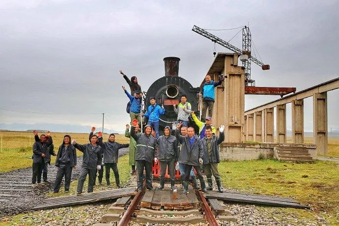 6、同行的nono與英雄列車(chē)和工人們合影,倍感光榮。