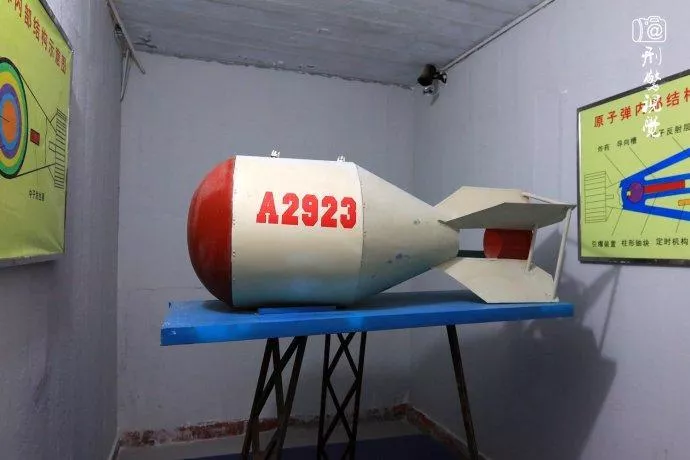 9、地下指揮所里擺放著我國(guó)首顆核彈和首枚氫彈的模型。