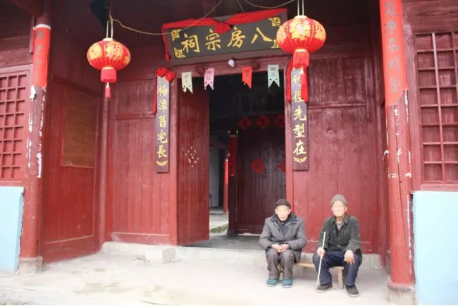 如圖:屏山村的祠堂,當(dāng)年紅軍經(jīng)過時在這里貼有紅軍宣傳標(biāo)語