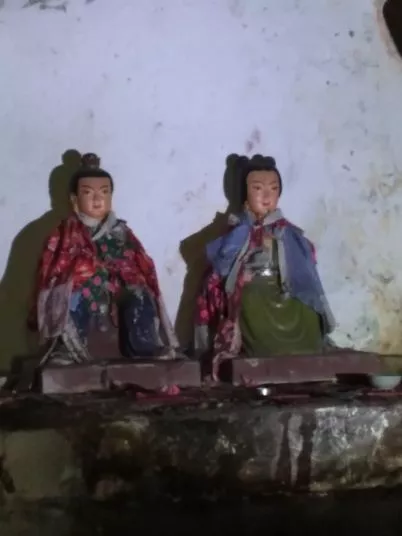 如圖:小紅軍粟六當(dāng)年靠吃殿內(nèi)的供品活了下來。圖右為屏山村丫頭殿內(nèi)供奉的丫頭娘娘