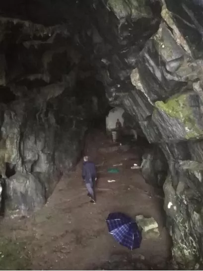 如圖:當(dāng)年屏山村的村民利用丫頭殿這個巖洞保護(hù)了小紅軍粟六