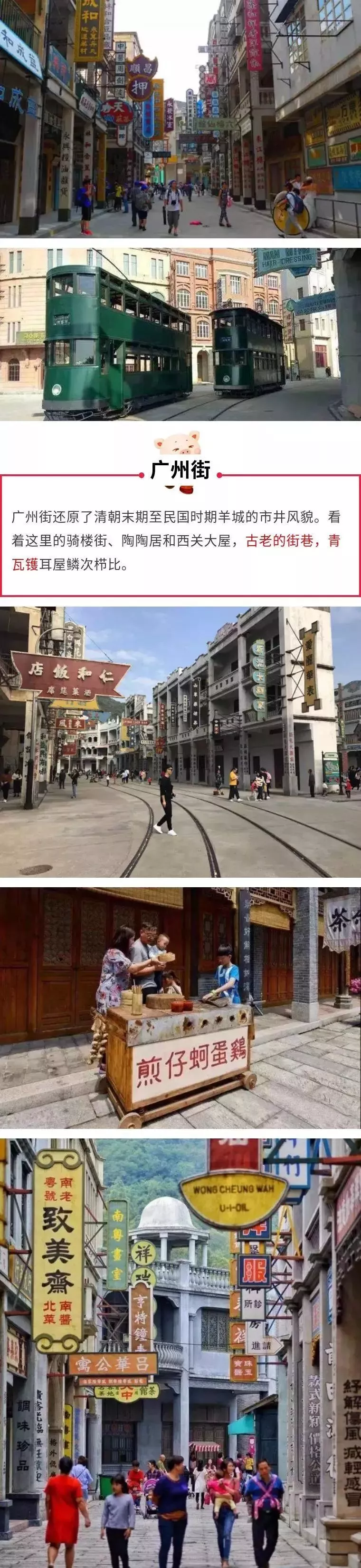 廣州街景始終是老廣州人特殊情懷的存在;19世紀(jì)的廣州城市街景在此還原,仿佛就像一段歷史的縮影;許多當(dāng)時(shí)廣州有名的建筑也得以重現(xiàn),讓游客既能緬懷廣州歷史、又能探尋古物遺跡