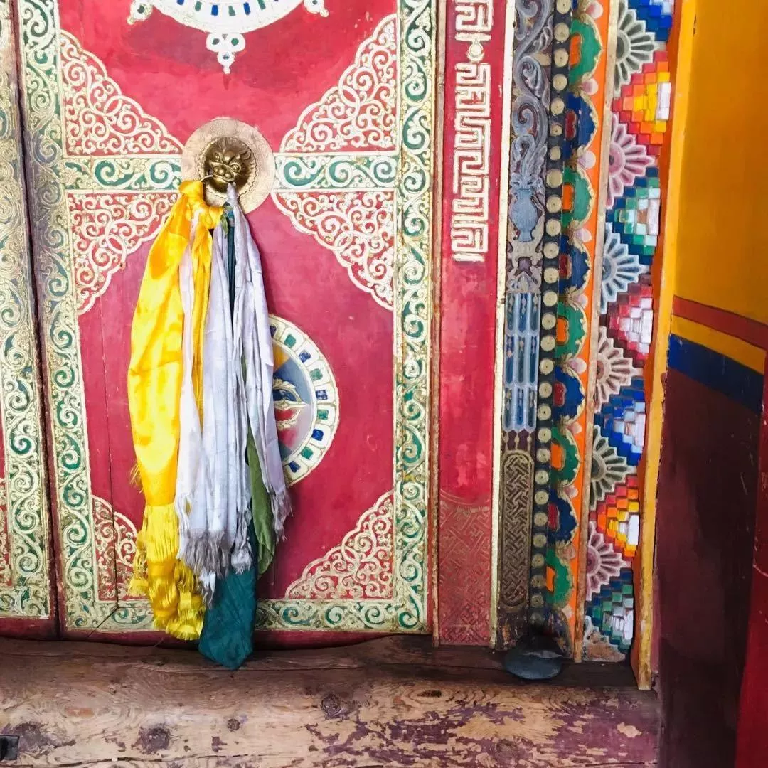 拉加寺壇城沙畫享譽(yù)國(guó)內(nèi),因?yàn)槔铀率侨珖?guó)唯一一座能在同一天誕生十六幅壇城沙畫的寺廟。壇城沙畫選用特殊細(xì)沙砌成。所用的白沙,是以手工磨制特殊石頭而成,為完成這些壇城沙畫,會(huì)提前好幾個(gè)月甚至一年,安排僧人采購(gòu)材料包括黃金綠松石、瑪瑙等貴重金屬和礦石,甚至親自采集一些不知名植物,再經(jīng)染色,方才成為沙壇城的基本素材。共有白、黑、藍(lán)、紅、黃、綠六色,除白黑之外,余四色又分為深、中、淡三種層次,總共可調(diào)配成十四種顏色。一般而言,藍(lán)、黃、紅、綠、白五種基本顏色,對(duì)應(yīng)著五方佛及五智。