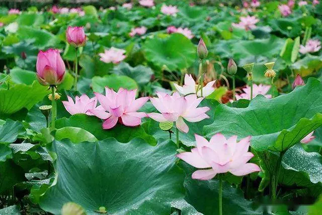 荷葉羅裙一色載,芙蓉向臉兩邊開;亂入池中看不見,聞歌始覺有人來?!笔⑾牡娜A億莊園,近300畝荷花燦爛盛開,花期將持續(xù)到10月份。