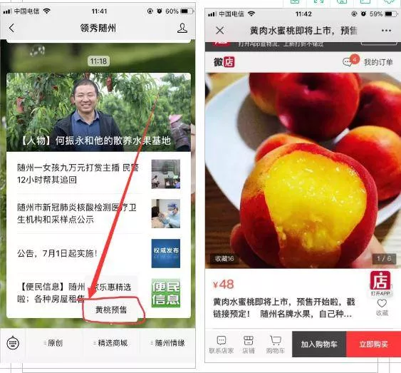 第二步:點(diǎn)擊精選商城進(jìn)入黃桃預(yù)售就可直接預(yù)購了