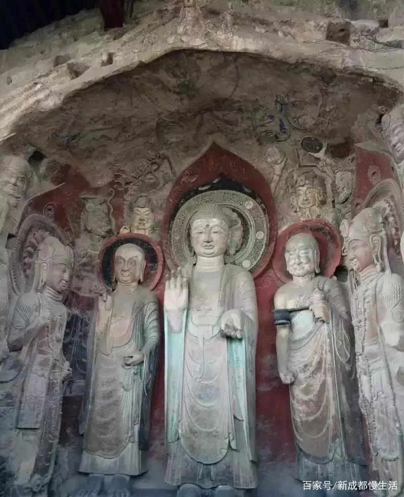 皇澤寺內(nèi)的摩崖造像,堪稱藝術史上的魂寶。開鑿始于北魏盛于唐,主要有中心柱窟、五佛窟、大佛窟等,其中尤以大佛造像最為恢宏精美。這些石窟規(guī)模宏大,工藝精湛,乃我國唐初佛教石刻造像的藝術精品。