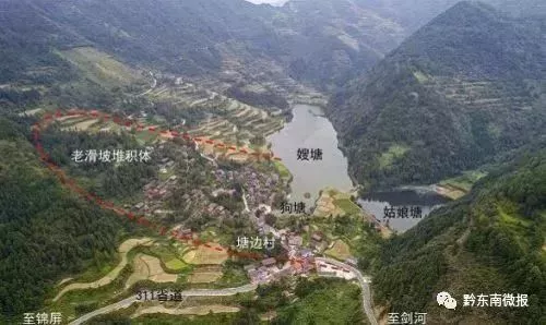 據(jù)了解,古滑坡是指地質(zhì)年代第四紀(jì)全新世(約1.17萬(wàn)年)以前發(fā)生滑動(dòng)現(xiàn)今整體穩(wěn)定的滑坡,老滑坡是指第四紀(jì)全新世以后發(fā)生滑動(dòng)現(xiàn)今整體穩(wěn)定的滑坡,新滑坡是指現(xiàn)今發(fā)生或正在發(fā)生滑移變形的滑坡。此次發(fā)現(xiàn)兩處老滑坡形成的堰塞湖分別是“雷打塘”和“崩坡塘”,兩“塘”直線距離約66公里?!袄状蛱痢蔽挥谫F州省劍河縣,大、中、小三塘分別是嫂塘、姑娘塘和狗塘,漲水時(shí)三塘聯(lián)成一片,枯水季又各自成塘,景觀奇特,為貴州境內(nèi)第二大天然湖泊;“崩坡塘”位于貴州省榕江縣,塘周植被覆蓋良好,蒼木蔥郁,碧波青障,環(huán)境幽靜。