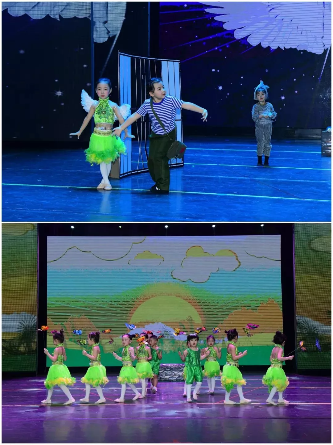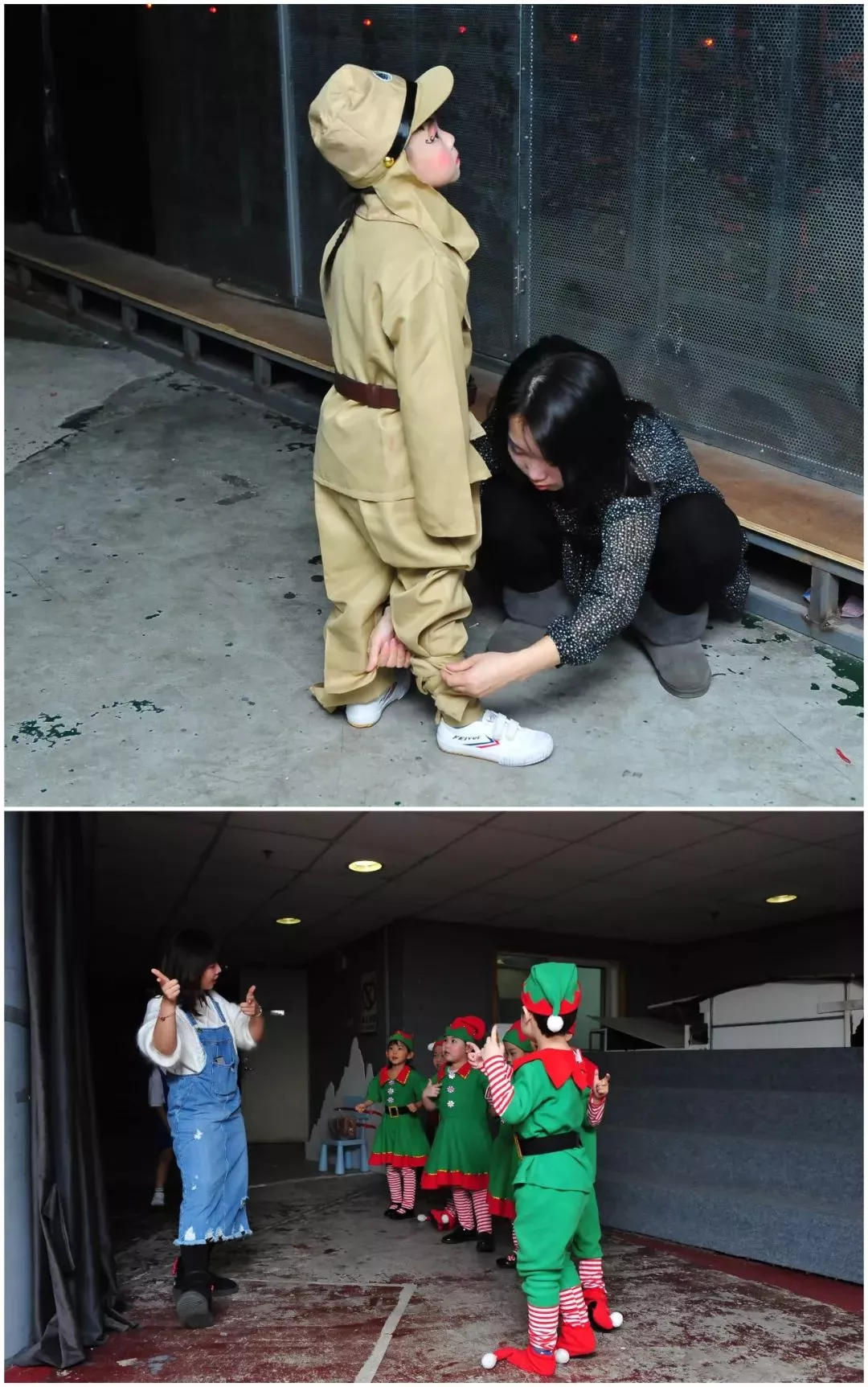 孩子們在舞臺上展示自己活潑自信的一面,將每一個角色用自己的理解與方式呈現(xiàn),臺下爸爸媽媽舉起手中的熒光棒給孩子們加油打氣,后臺中,小演員們開心搞怪,十分歡樂。