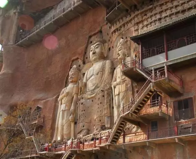 中國四大石窟之一的麥積山石窟,因該山狀如堆積的麥垛而得名,位于天水東南約30公里山中。據文獻記載,后秦時開窟造像,創(chuàng)建佛寺。