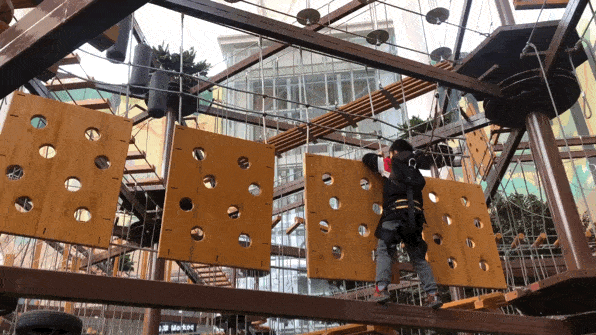 “堅(jiān)果部落”位于一層的挑戰(zhàn)娛樂區(qū),占地面積約1000㎡,面對(duì)全齡游客開放,給人以五星的挑戰(zhàn)型體驗(yàn)。