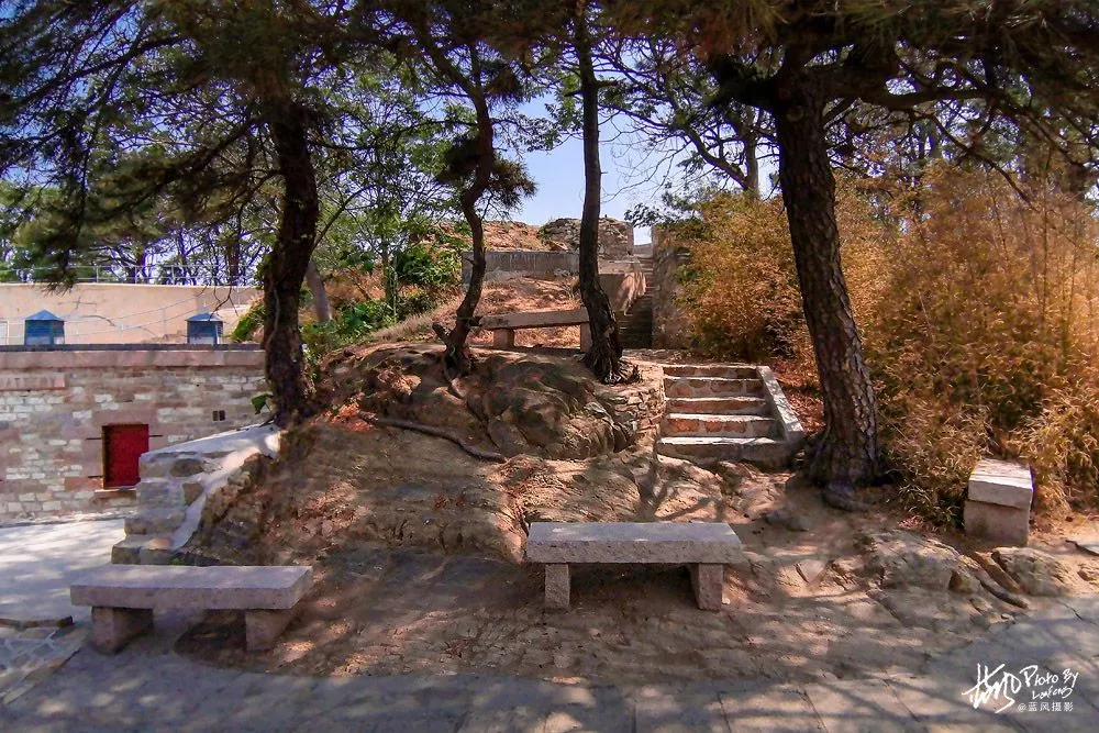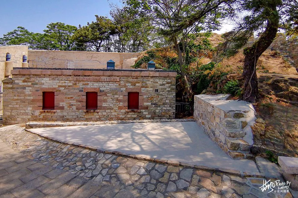 當(dāng)時在甲午戰(zhàn)時尚未完工的大頂子炮臺成為英軍新炮臺的臺址。英軍利用原有的一些營房、護(hù)墻、炮位等拆毀的石材,在1901年初完成新炮臺建設(shè),取名為“百夫長炮臺”。炮臺之名源自當(dāng)時的英國皇家海軍中國艦隊旗艦“百夫長”。如今游客可以乘坐覽車直達(dá)旗頂臺炮臺,居高臨下,遠(yuǎn)處的美景盡收眼底。