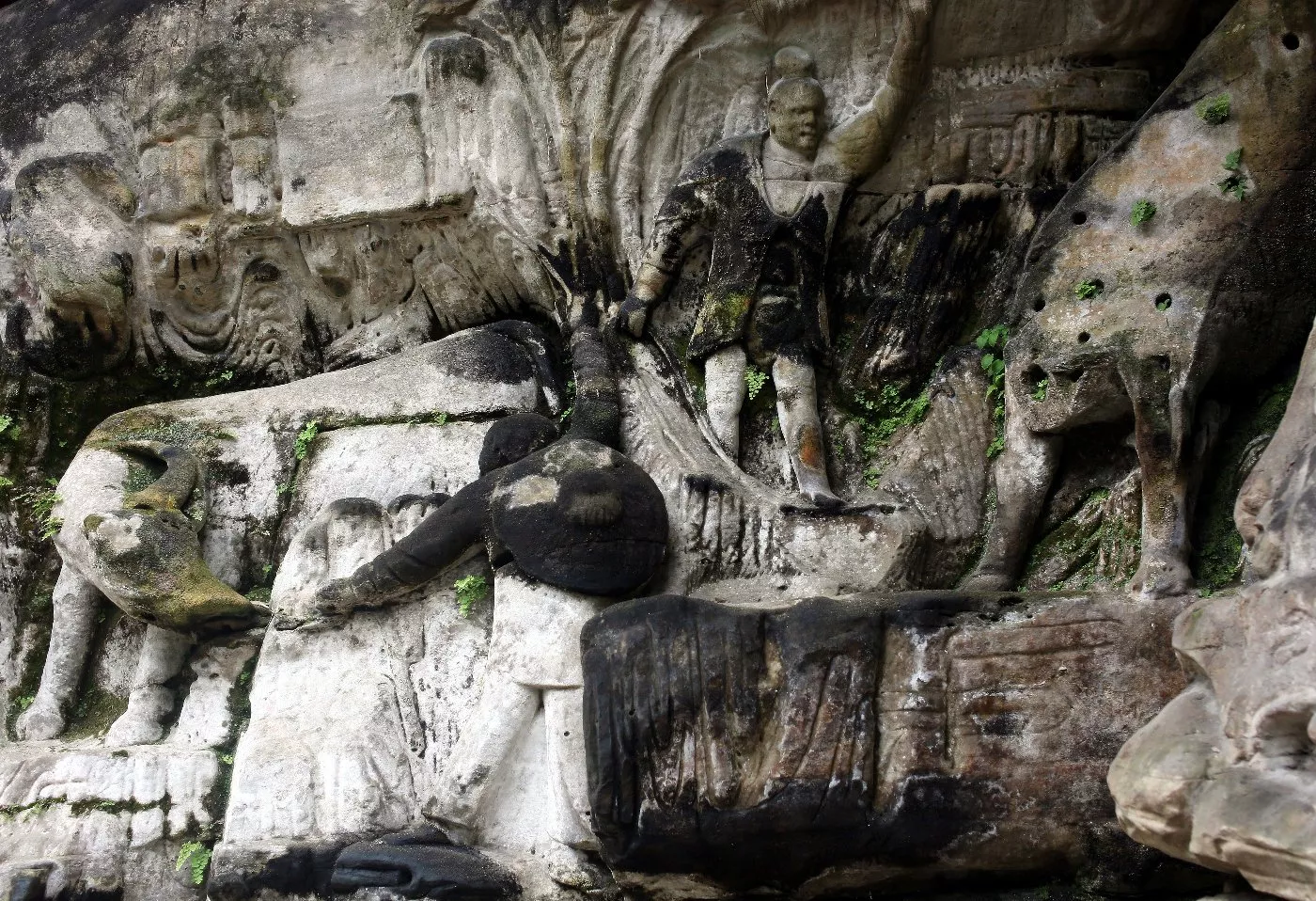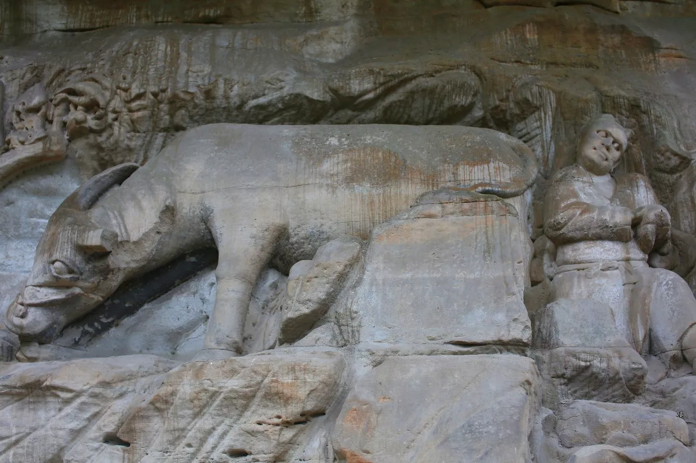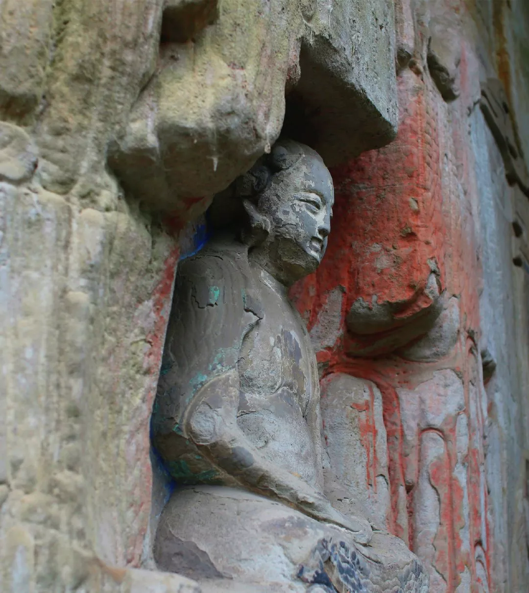 可惜的是自此以后,中國(guó)石窟藝術(shù)停滯,放眼全國(guó),其他地方再未開鑿出過任何一座大型石窟,這也使得大足石刻成為了中國(guó)石窟藝術(shù)史上最后的一座豐碑。后來的南宋晚期因戰(zhàn)亂石刻造像中斷,直至明代永樂年間,摩崖造像方漸復(fù)蘇,一直延及晚清。明清兩代的500年間共有摩崖造像39處,雖不乏佳品,但多為小型造像區(qū),石窟藝術(shù)的敗落由此可見!