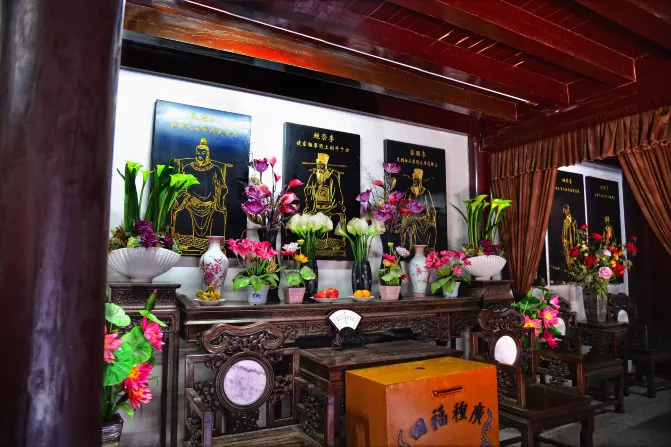 后堂是祖堂,供奉濟(jì)公祖上七代人物的祖宗畫像。
