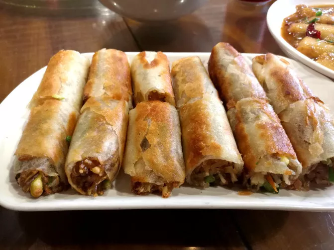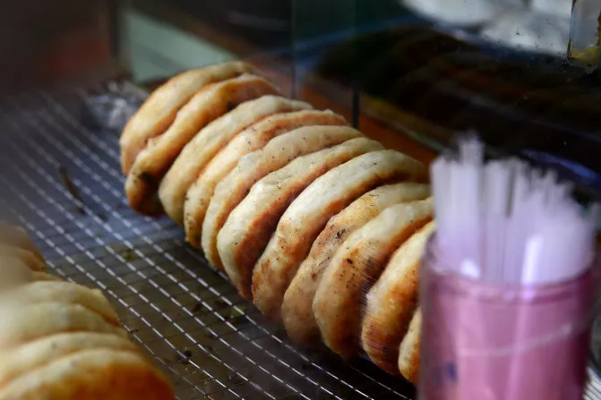濟(jì)公餅,也就是我們這邊的“肉盒子”,面餅里加上肉餡。濟(jì)公的家鄉(xiāng)嗎,美食小吃也沾光了。