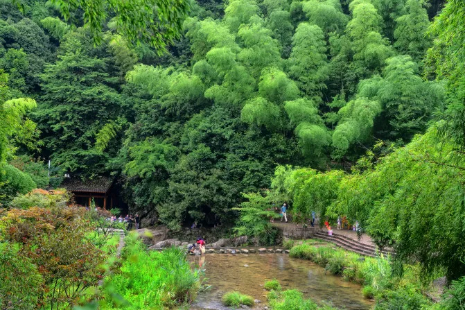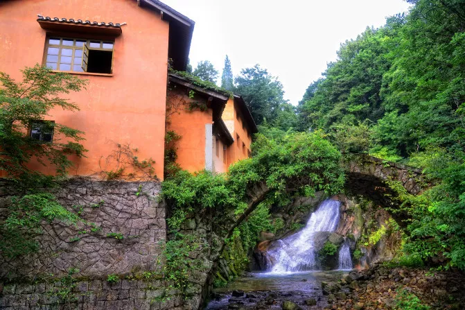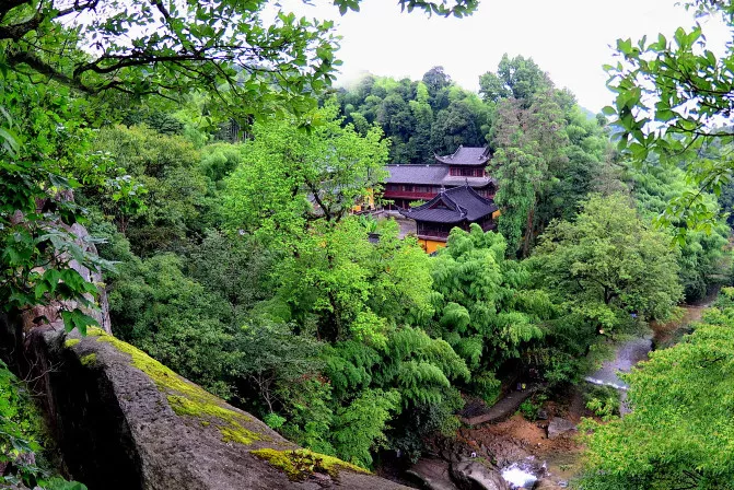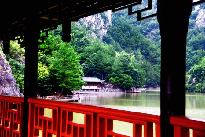 古方廣寺又稱下方廣寺,位于瀑底左側(cè),這里為為天臺(tái)宗,茂林修竹,掩映其間。