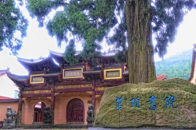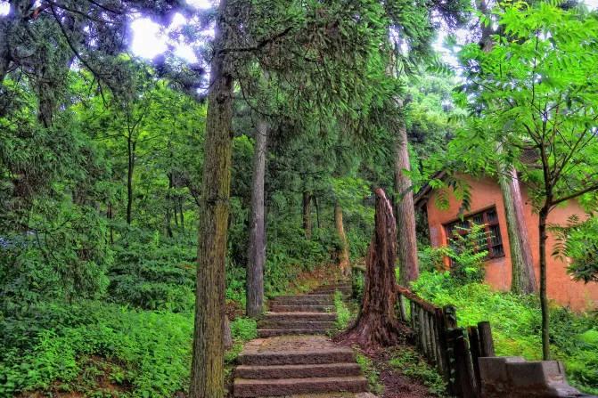 深林藏幽寺,這里還有著名的“華頂寺”,后晉天福元年(936)始建,寺前六株巨柳杉,體量魁偉,高聳入云,高八丈有余,直徑三人合圍,極為少見。
