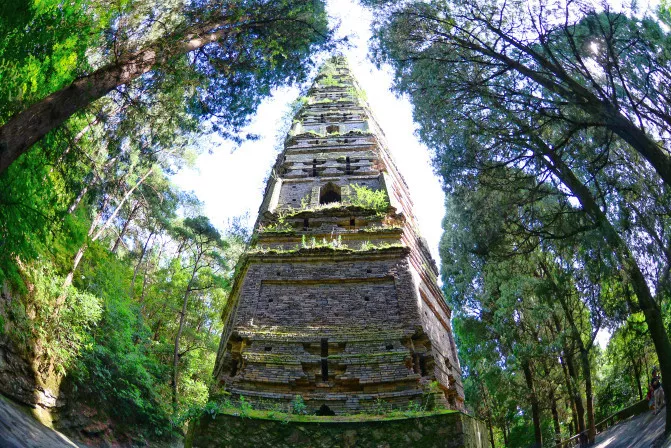 寺前的隋塔,是國(guó)清寺的標(biāo)志建筑物,距今1400多年。它是晉王楊廣為報(bào)智者大師給他授菩薩戒的師恩而建造的報(bào)恩塔,塔身黃褐色,高59.3米,六面九級(jí),空心,磚壁。原是磚木結(jié)構(gòu),后因火災(zāi)焚毀了飛檐斗拱,現(xiàn)在看到的是塔身六角都是空洞的,有搖搖欲墜的感覺。文革時(shí)期險(xiǎn)些造紅衛(wèi)兵損毀。