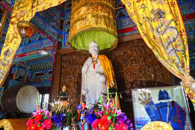 這是濟(jì)公佛殿,殿內(nèi)供奉的濟(jì)公佛像是有白玉做成的,濟(jì)公略微仰望,這是為了看天下哪里有不平之事,就去前往解救。