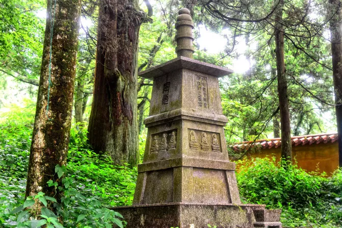 華頂寺旁建有禪師靈塔一座,據(jù)資料載該塔建于1930年代初,塔身呈方形,是三級(jí)石砌塔。塔上字跡清晰可辨:妙明真覺無見睹禪師之靈塔。其生前撰有《天臺(tái)無見睹禪師語錄》,流傳甚遠(yuǎn)。