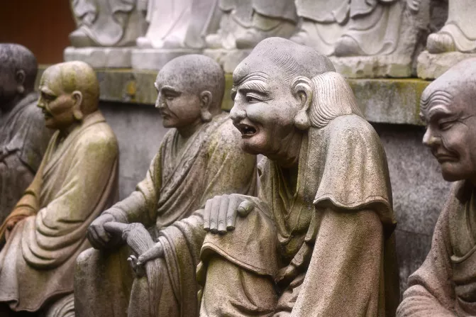 羅漢堂里五百羅漢神態(tài)各具,由于這里是濟(jì)公的故鄉(xiāng),傳年青時(shí)的濟(jì)公曾在這里拜瞎堂慧遠(yuǎn)長(zhǎng)老為師,所以濟(jì)公的塑像自然擺放在顯著位置。