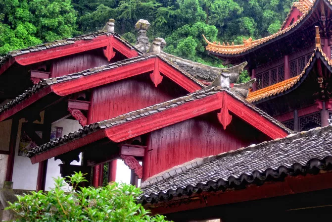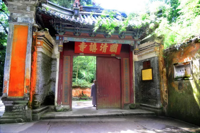 瞧國(guó)清寺這個(gè)山門熟悉吧?當(dāng)年李連杰主演的電影少林寺”山門就取景于此?!皣?guó)清寺”三個(gè)字為雍正皇帝書寫。
