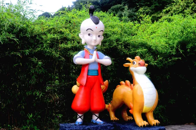 濟(jì)公出生之時(shí),國(guó)清寺的降龍羅漢突然倒塌,由此有羅漢投胎轉(zhuǎn)世之說。假山上立有“降龍亭”,亭前是濟(jì)公銅像。。