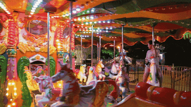 摩天輪、海盜船、高空飛翔在燈光掩映下