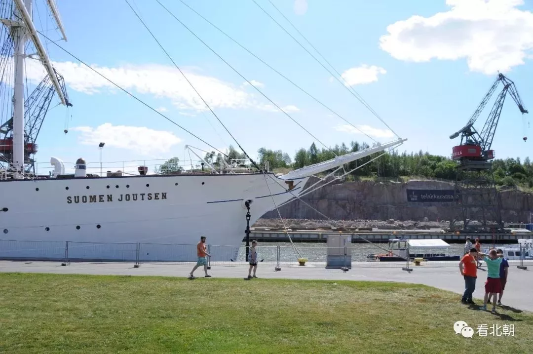 停泊在sigyn號(hào)前方的是芬蘭天鵝號(hào)風(fēng)帆訓(xùn)練艦,這是一艘1902年于法國圣納澤爾建造的鋼殼大帆船,1922年被賣給德國,1930年,芬蘭政府將其購入并重新命名為芬蘭天鵝號(hào)(芬蘭語Suomen Joutsen),用作海軍訓(xùn)練艦。本艦長(zhǎng)96米,寬12.3米,桅頂高52米,吃水6.35米,船深7.29米,總帆面積2807平方米,最大航速16.4節(jié),建造之初滿排3100噸,芬蘭政府購入后改裝為訓(xùn)練艦,噸位減少為2900噸,吃水也相應(yīng)減輕。本艦還裝有兩具兩百馬力的熱球式發(fā)動(dòng)機(jī),估計(jì)是原裝的,維基在介紹艦史時(shí)并沒有在30年改裝時(shí)提到過這兩具發(fā)動(dòng)機(jī)。