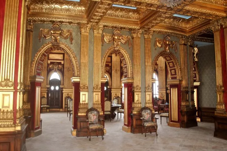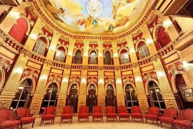 小廳房間目及之處都光彩奪目,內壁裝飾以雕刻和掛毯為主,配有17世紀手藝精湛的家具,厚重的木質樓梯欄桿,貴族氣息撲面而來。