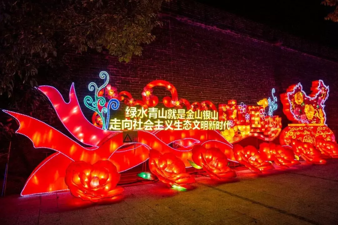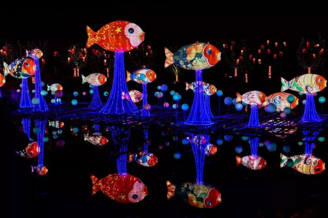 本次花燈會(huì)是歷年來(lái)規(guī)模最大、最為亮麗的燈會(huì),75組燈盞遍布全城,龍、豬、鳳凰、各種動(dòng)物等造型各異,把古城裝扮成一座亮麗的童話世界。