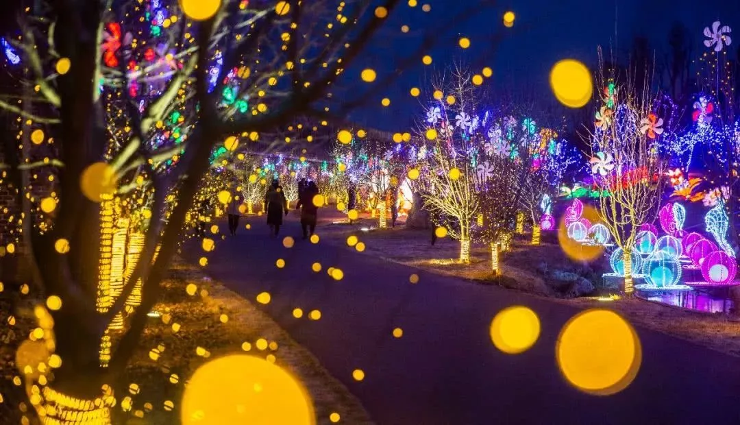 順著指引來(lái)到海棠大道,兩側(cè)的樹木上纏繞著各式各樣的小花燈,遠(yuǎn)遠(yuǎn)的看上去如同漫天的繁星,走上路上,宛若遨游太空。路邊的《律動(dòng)》燈組別致有趣,成排的地?zé)舴浅DЩ?,每踩一下等就?huì)變換一種顏色,配上樹上掛滿的小燈,好像美麗的童話世界在開(kāi)音樂(lè)晚會(huì),而游客就像在指揮跳躍的音符。