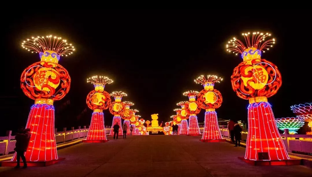 2019臺(tái)兒莊古城新春花燈會(huì)一盞盞花燈次序點(diǎn)亮,萬(wàn)盞花燈交相輝映,造型各異的花燈獨(dú)具特色,為您編織出夢(mèng)幻琉璃的“最美水鄉(xiāng)”夜。