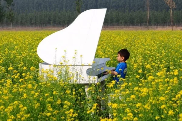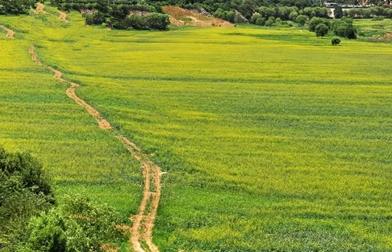 3、不同景別適合不同構(gòu)圖技巧:如果讓大片的油菜花鋪滿畫面,整幅作品顯得沒(méi)有主體,僅僅是鋪滿了顏色,并不能算作一幅成功的作品。在色彩學(xué)里,黃色和綠色是比較接近的兩種顏色。因此,有這兩種顏色過(guò)渡的場(chǎng)景是我們拍攝的好題材。