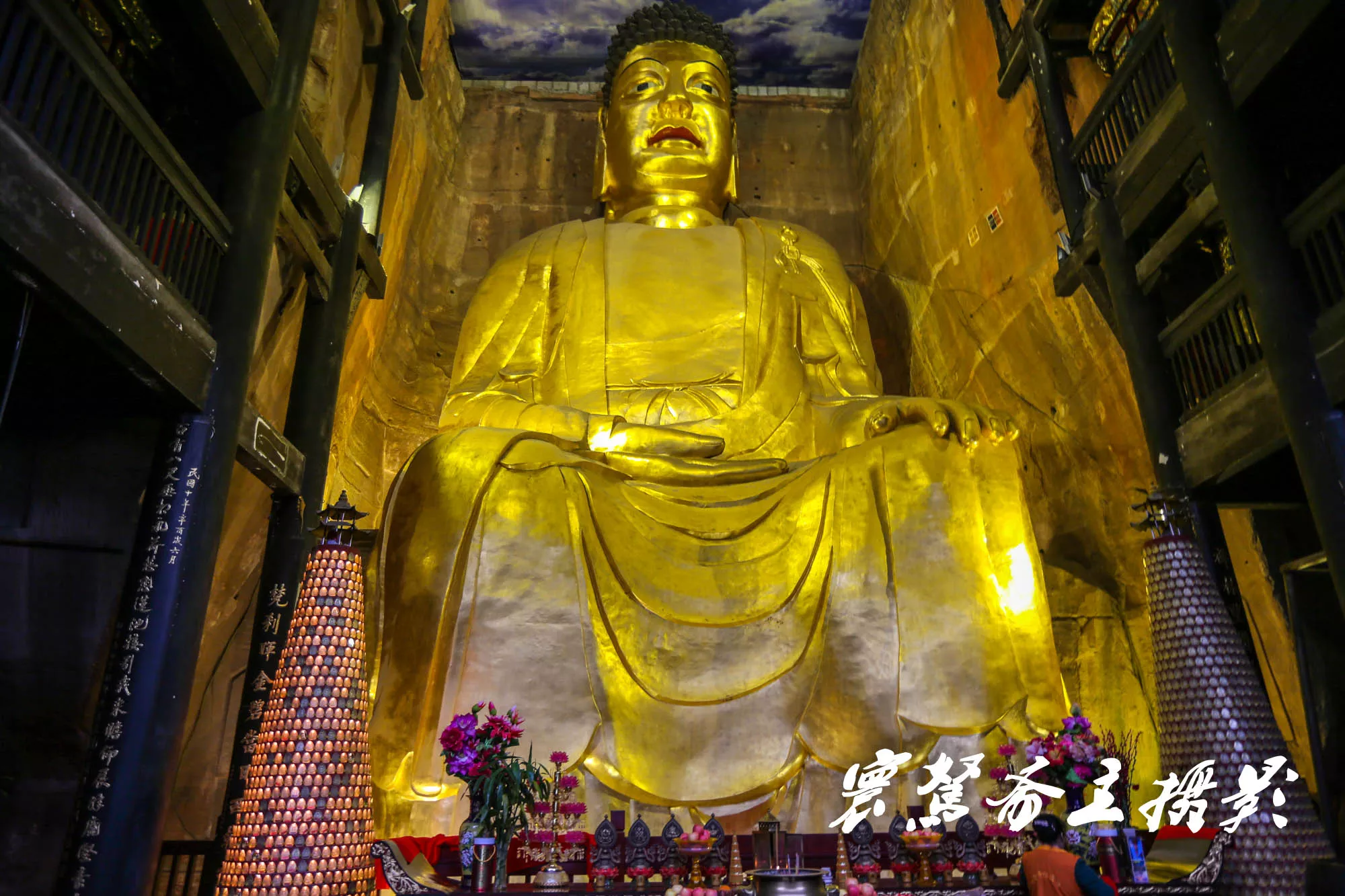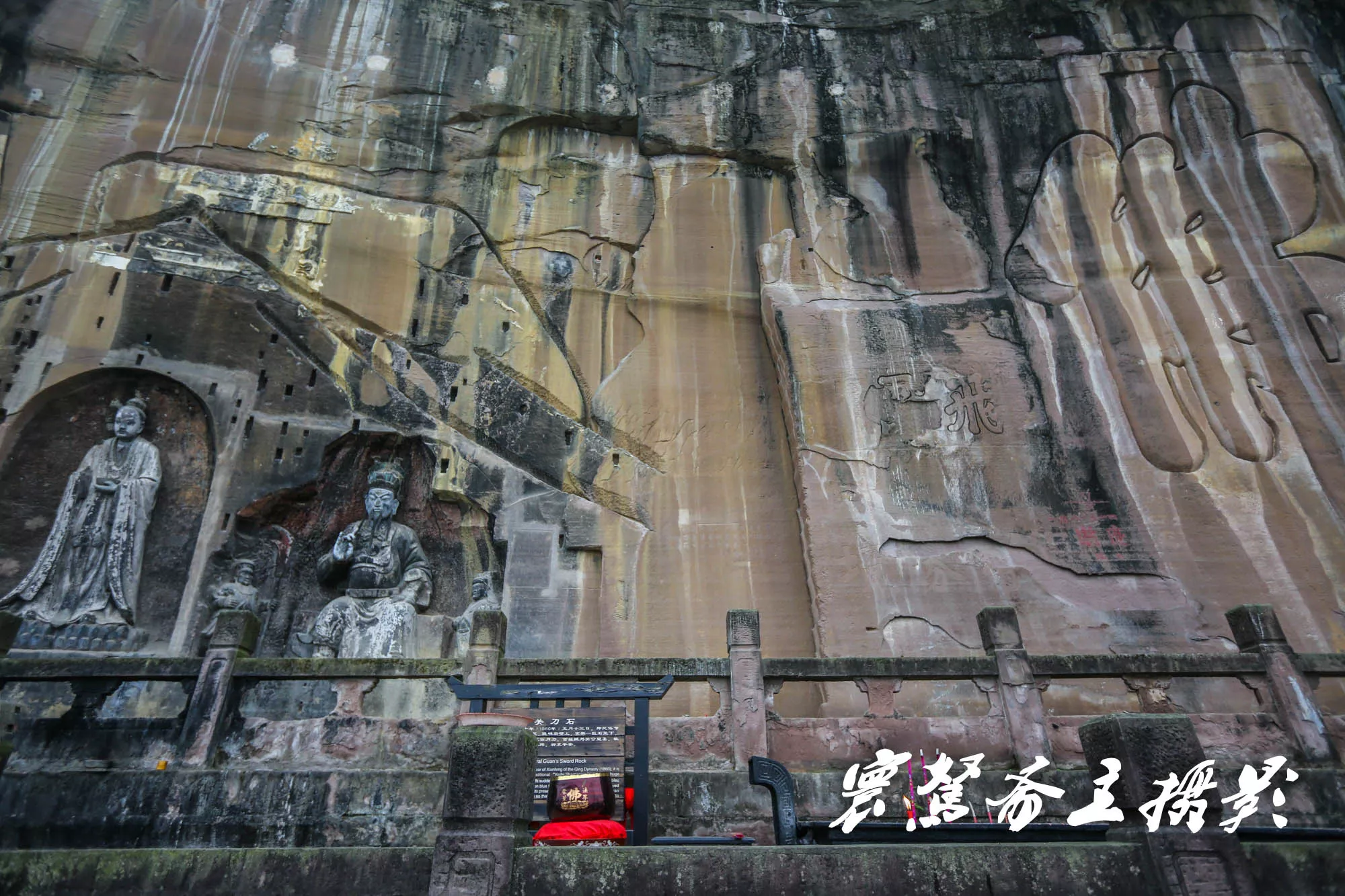 大佛寺的佛崖石刻開(kāi)鑿于隋朝,具有極高的歷史價(jià)值,這個(gè)“佛”字是全國(guó)最大的摩崖石刻書法頂天“佛”字。