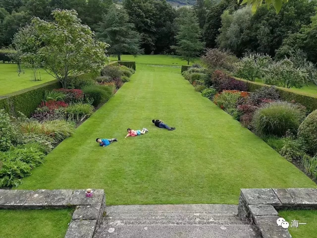 草坪坡道,三個娃突發(fā)奇想從上面滾下去,再跑上來,幾個來回玩得不亦樂乎!