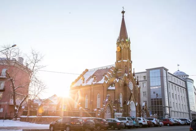 喀山圣母大教堂是伊爾庫茨克唯一一座東正教的教堂,是整個西伯利亞最華美的教堂,它是典型的拜占庭式風(fēng)格,紅色外墻,藍色洋蔥頭,在陽光的照射下,就像城堡一樣。