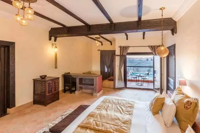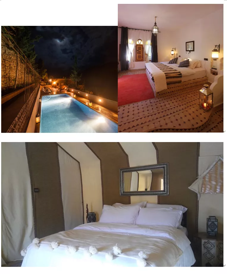 3.豪華私人團(tuán);豪華沙漠團(tuán)貴在食宿。第一晚是古堡大酒店,設(shè)施齊全,環(huán)境好,位置在達(dá)德斯峽谷邊上,還有室外游泳池。不僅在進(jìn)沙漠之前可以進(jìn)行一次好好地休息修整,而且風(fēng)景無敵,隨便一拍都很美麗。晚餐和早餐也比較豐盛。