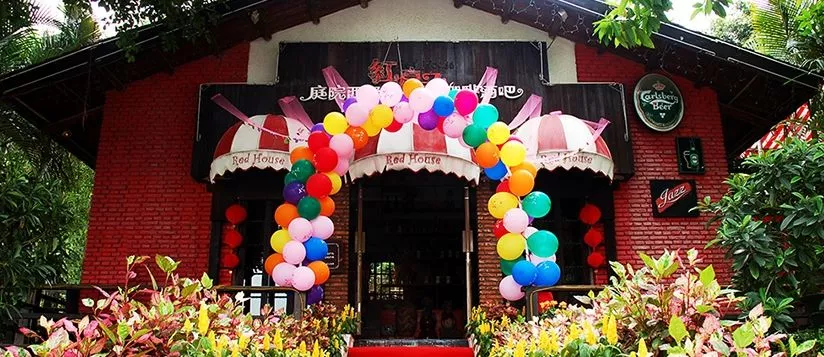 紅房子西餐廳是一個半戶外設(shè)計的庭院西餐