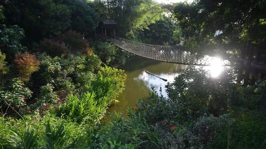 長長的吊橋兩岸幽綠