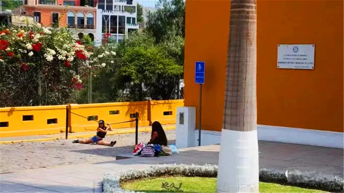 Barranco,巴蘭科是利馬最具波西米亞浪漫風(fēng)格的行政區(qū),也是很多藝術(shù)家,音樂家和哲學(xué)家聚集之地。圖為一跳舞的女孩在壓腿拉筋