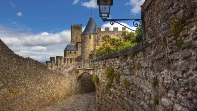 卡爾卡松城內(nèi)的古城堡號稱是歐洲現(xiàn)存的最大、保存最完整的城堡,固若金湯的中世紀(jì)古堡擁有內(nèi)城與外城的雙重城墻,內(nèi)墻是羅馬式城壘,外圍為哥特式城墻,內(nèi)外城各26座箭樓。