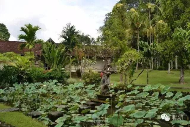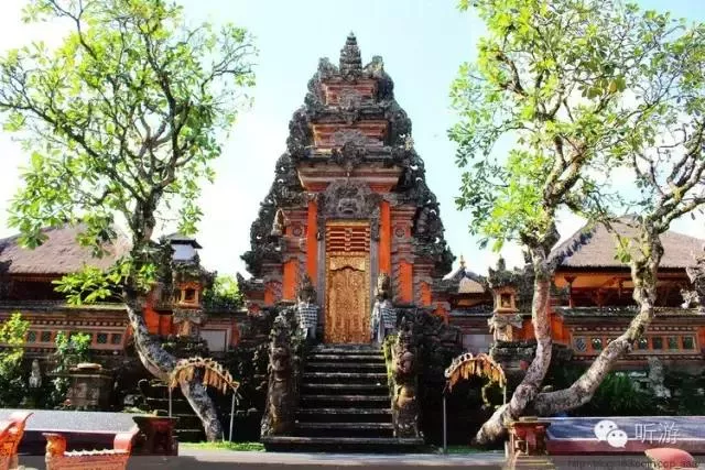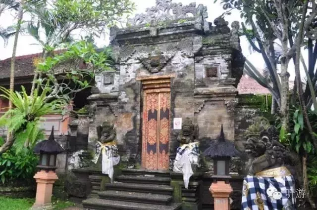 踏進王宮,院落幽靜,建筑物充滿自然、古樸、典雅的印尼特色,既有精工細作雕刻的山門,院墻,甚至墻壁,各座院子門口的石雕佛像,也有草編的屋頂,熱帶植物的艷麗色彩與金碧輝煌的院門。