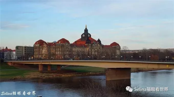 ▲ 踏上通往新城區(qū)的步行橋,回看易北河南岸的瑰麗風(fēng)光