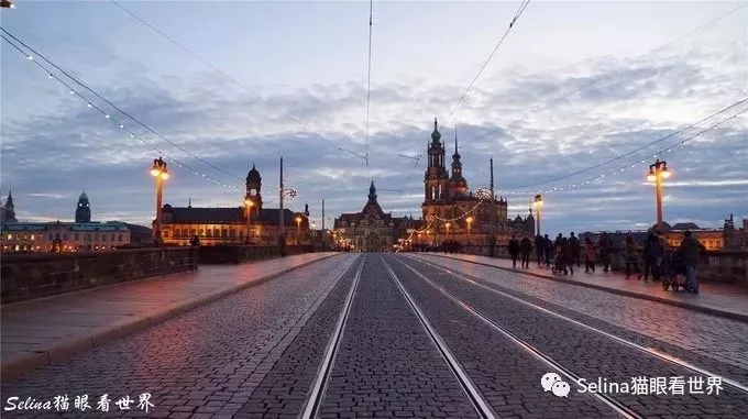 踏上通往新城區(qū)的步行橋Augustus Brucke,回看易北河南岸的瑰麗風(fēng)光,景致更加攝人心魄。Augustus Brucke延伸至中央大街,黃金騎士像下的新城市市場,另一處圣誕市集也已經(jīng)結(jié)束了。