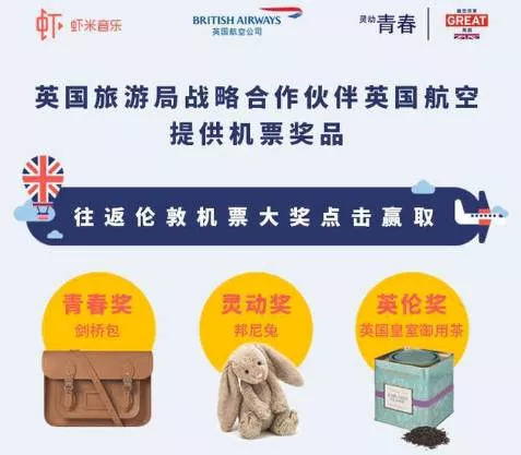 【送機票】我們#靈動青春#的線上活動正在火熱進行中,只要點擊底部“閱讀原文”或進入活動頁面,留下你的姓名/昵稱與郵箱,就有機會獲得由英國航空提供的機票,來英國親身體驗音樂之旅哦!另外還有劍橋包,邦尼兔,F(xiàn)ortnum & Mason茶葉等豐富獎品等你贏!