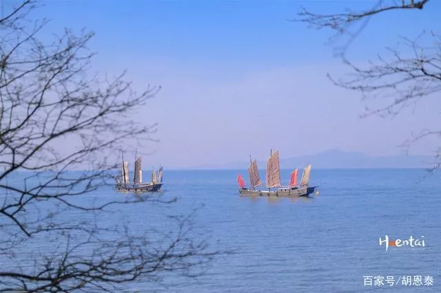 不得不說(shuō)來(lái)的時(shí)候天氣是真好,我還是第一次看到這么藍(lán)的太湖水。再往里走,走到“黿頭”的位置,幾條七桅帆船上的帆色都看得清清楚楚,后面的太湖仙島也隱約可見(jiàn)。