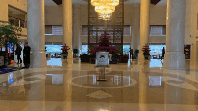 大廳里的環(huán)境也非常好,超級大的吊燈壁畫,給人一種金碧輝煌的感覺。