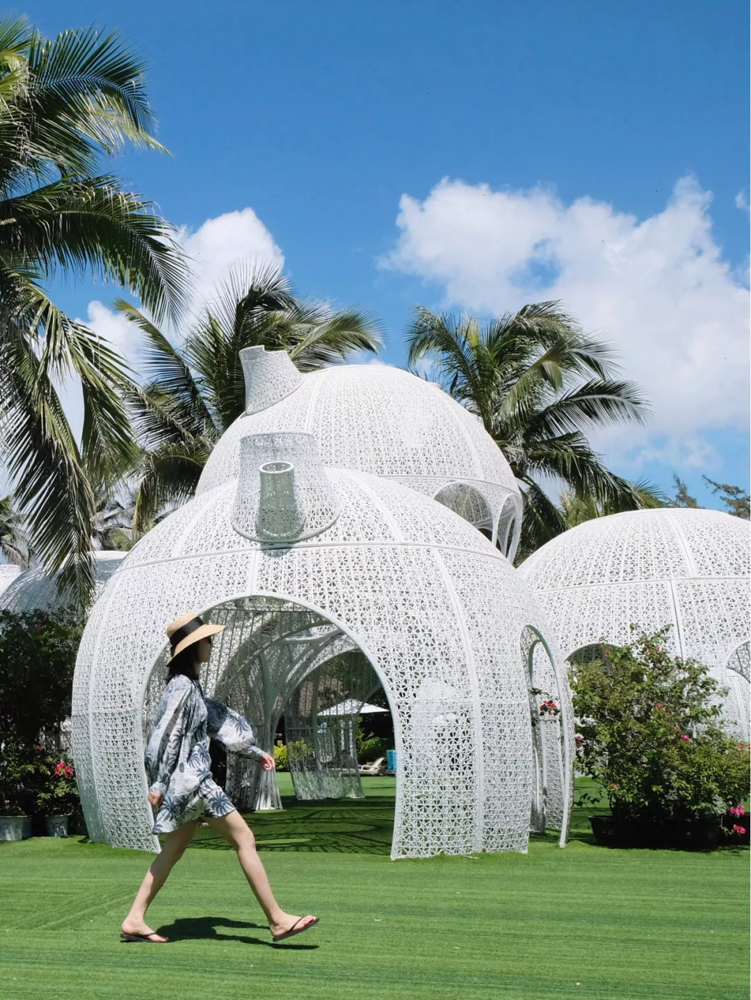 私人定制拍攝地:白色建筑、藍色泳池、綠色椰林,本身就像一幅畫一樣!