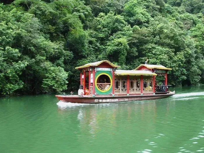 夏季不僅可以盡情在九鵬溪“吸氧”,與大自然親密接觸;看碧波林海隨著山風在眼前一層層漾開;還可以乘坐仿古畫舫游湖,將煩悶蕩滌一空,只剩下山水的清爽。